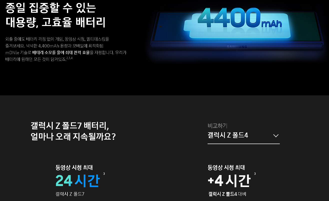- 배터리 : 4,500mAh / 25W 고속충전 / 무선충전 / 무선 배터리 공유